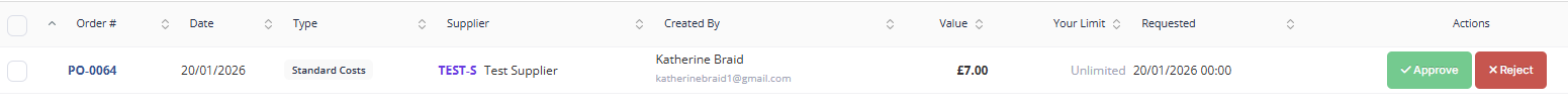 If a user does not have high-enough permission limits, their manually created POs will enter a Pending Approval state.