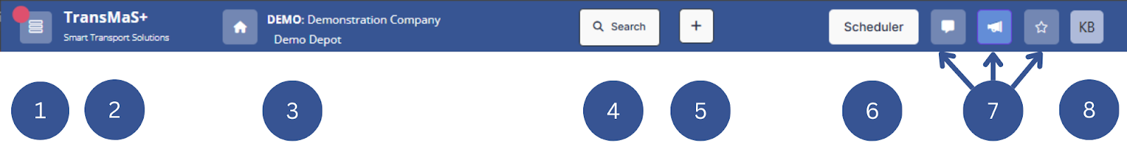 This is the TransMaS header bar - you can reach every part of the system from here.