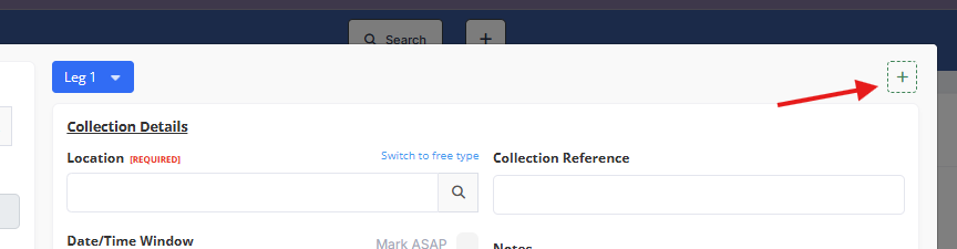 Multi-Leg Jobs: If the order involves multiple stops or legs, click the + icon in the top right. This adds a new consignment (leg) to the same order.