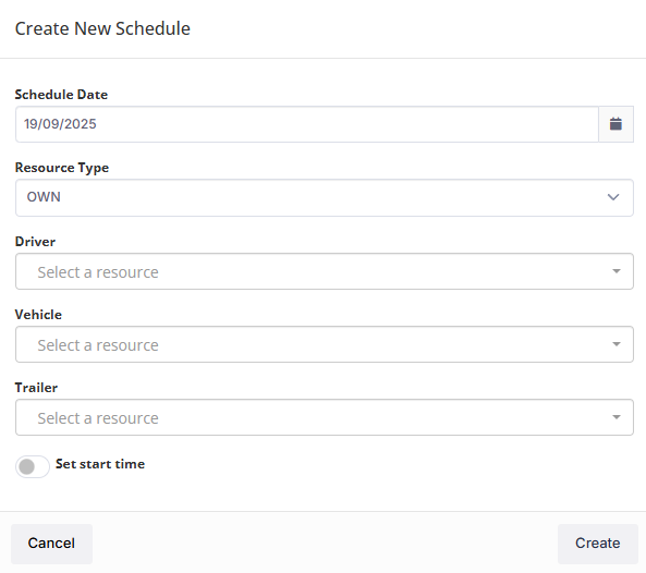 Please note that manual creation does not check a driver's availability, so make sure you're aware of any absences on the Driver Roster before creating a schedule for a driver.