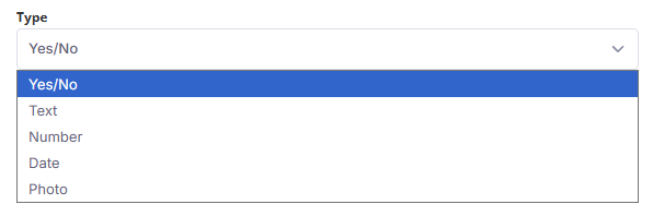 - Yes/No: A simple pass/fail question. Only this type will generate a fault. If No is selected, the driver will be prompted to take an optional photo of the fault.